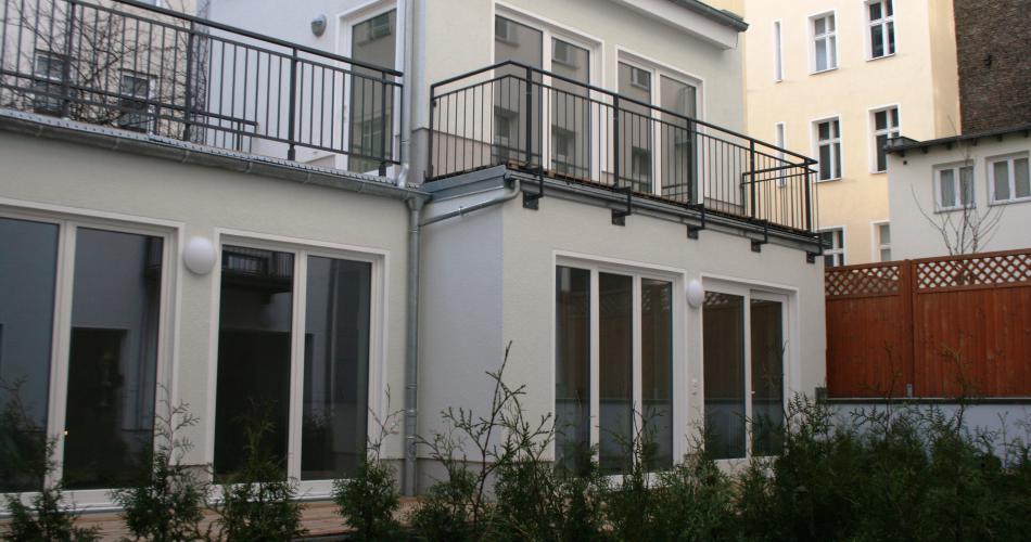 Im Gleimviertel wurde das um 1900 erbaute Stadthaus, bestehend aus einem Vorderhaus mit Seitenflügel und Gartenhaus, kern- und energieeffizient saniert. Im zweiten Innenhof wurde die Remise zu einer komfortablen Maisonetten-Wohnung ausgebaut. Zu den Wohnungen gelangt man durch einen einladenden Eingangsbereich, über die zwei neuen Aufzüge im ersten Innenhof oder über die schön verzierten und restaurierten Treppenhäuser. Zusätzliche Balkone im straßenabgewandten Bereich des Hauses sorgt für noch mehr Wohnkomfort. Der ist dank hoher, mit Stuck gestalteter Decken, Parkett mit Trittschalldämmung und aufgearbeiteter Altbautüren mit historischen Originalbeschlägen bereits auf hohem Niveau.
